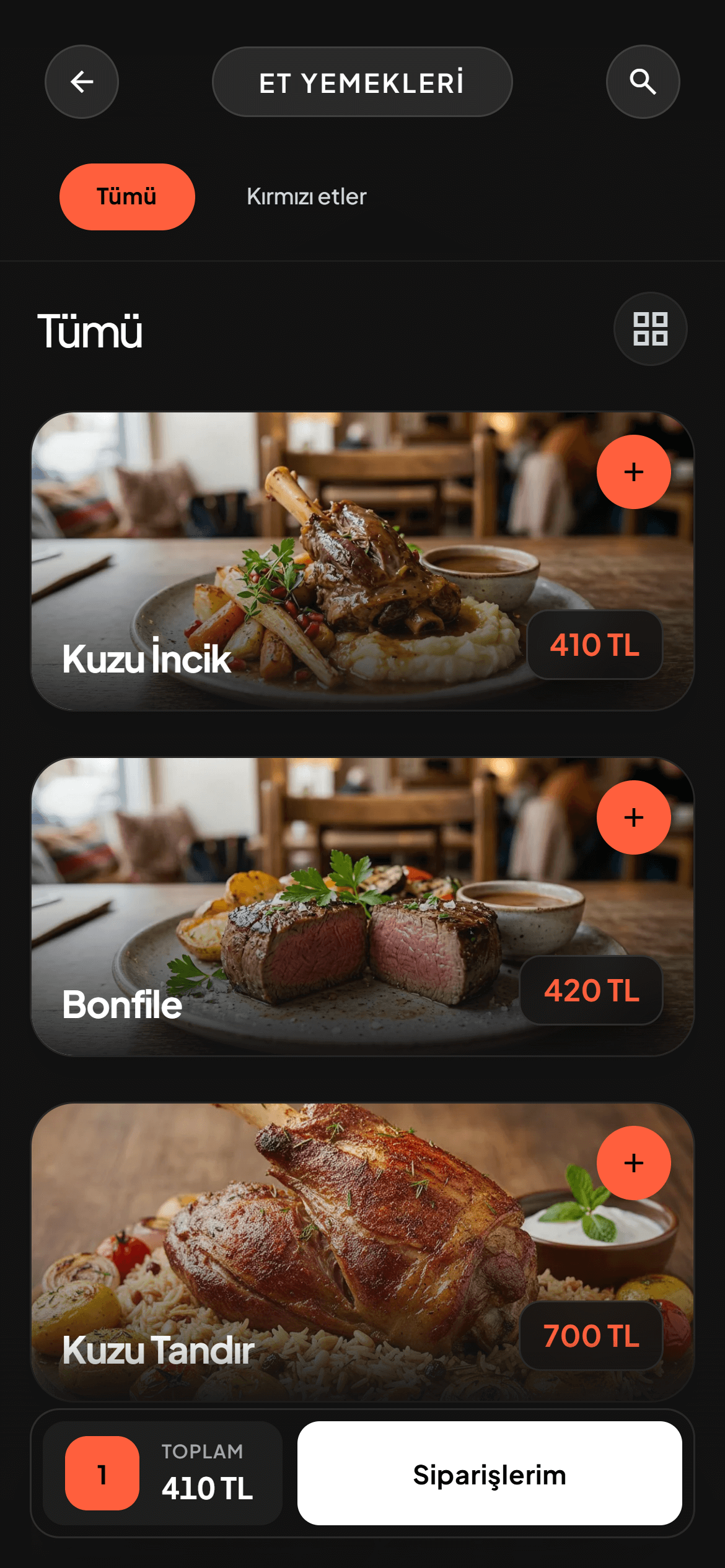 Beğenilen ürünleri sepete ekleyip tek tıkla garsona veya mutfağa gönderin.